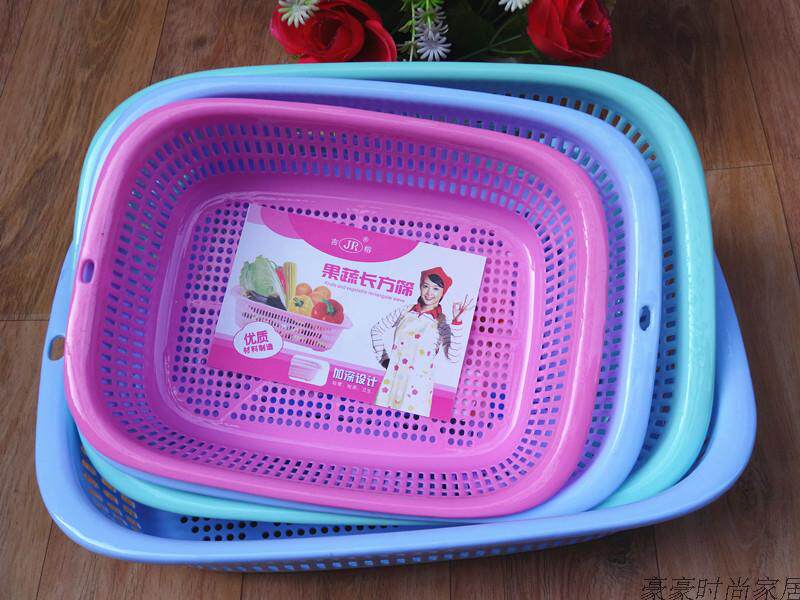 Thickened rectangular plastic sieve does not fall bad storage basket small square wire basket washing vegetable basket plastic multi-color fruit basket