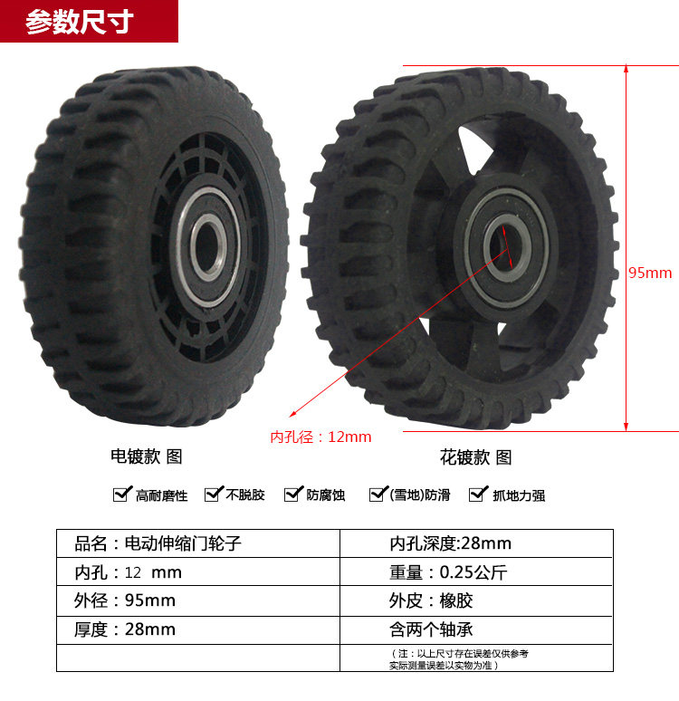 Electric retractable door wheel automatic door row rubber small caster 95 diameter rail driven reel accessories