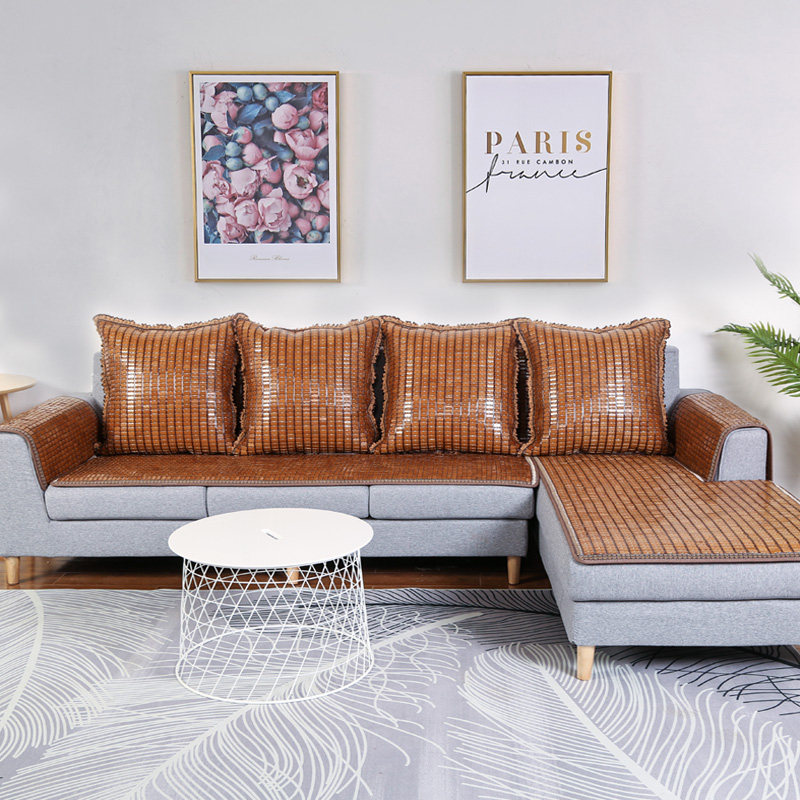 Sofa cushion Summer Mahjong couch cushion European style living room cloth art non-slip cushion bamboo mat set for summer models cool cushion-Taobao