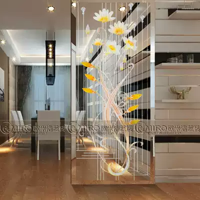 Modern simple carved art glass transparent transparent Magnolia screen living room compartment tempered color carving rhythm