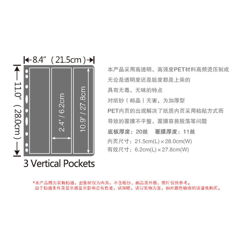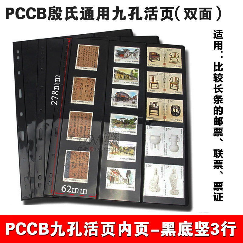 PCCB general national standard in-line nine-hole loose leaf inner page black bottom double face vertical 3 row stamp collection album live