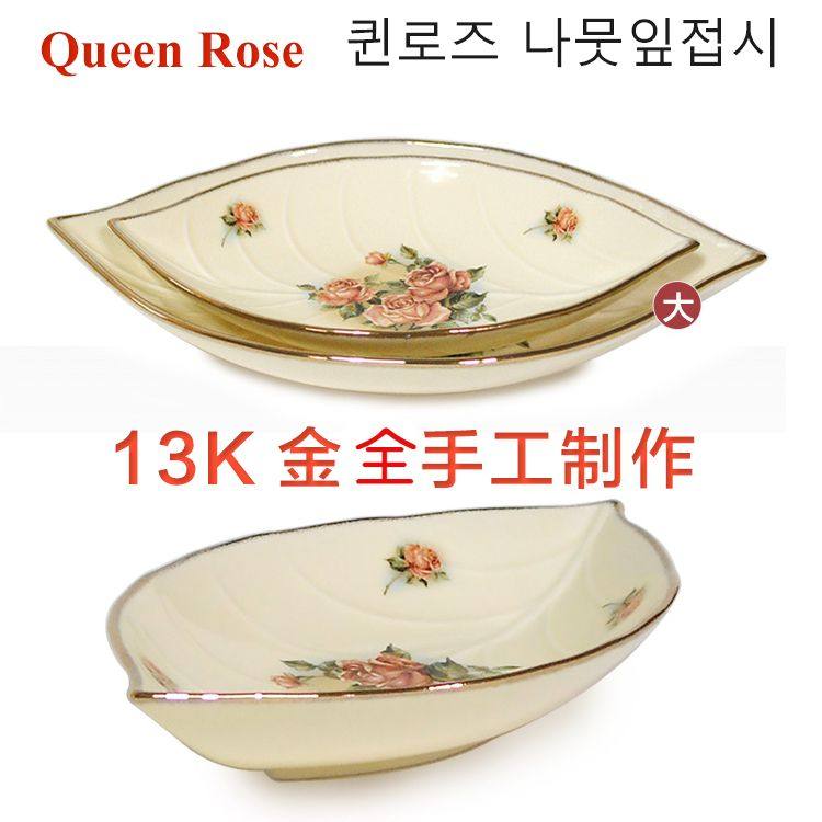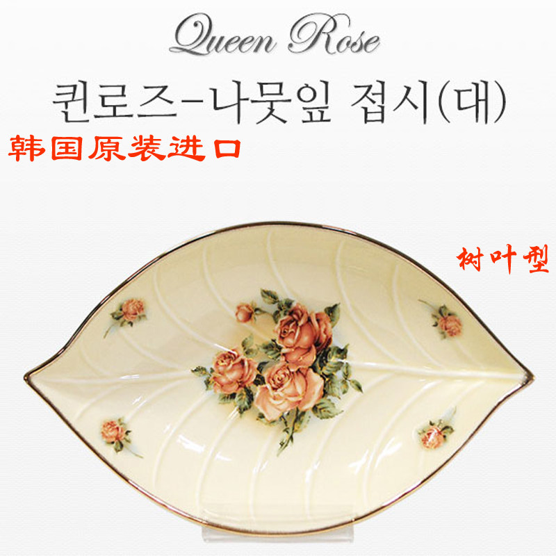 Domestic general generation Korea imported Queen Rose royal rose ceramic gold edge leaf plate fish plate soup plate