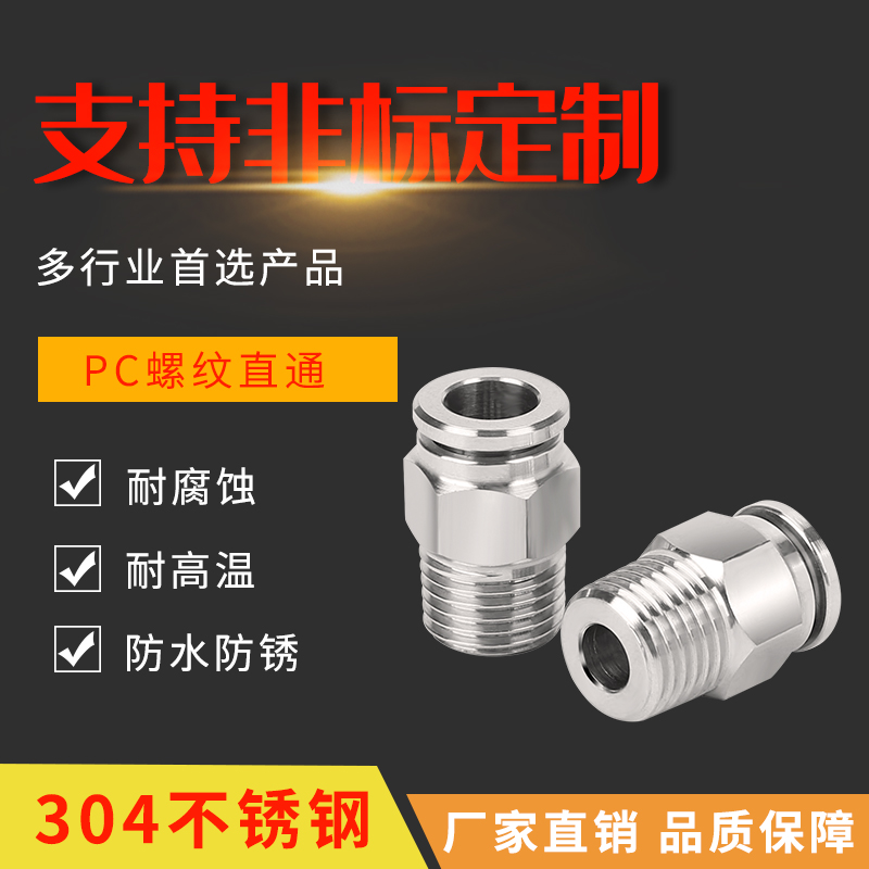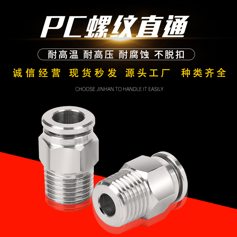Gold-Han stainless steel quick-insertion straight thread pipe joint PC external wire pneumatic rubber pipe quick-insertion straight through gas pipe joint