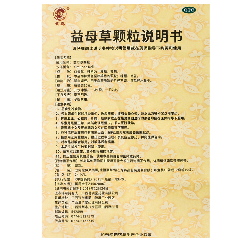 10 5 boxes) Golden Chicken Motherwort Granules 10 Bags Pharmacy for promoting blood circulation and regulating blood stasis and menstrual disorders