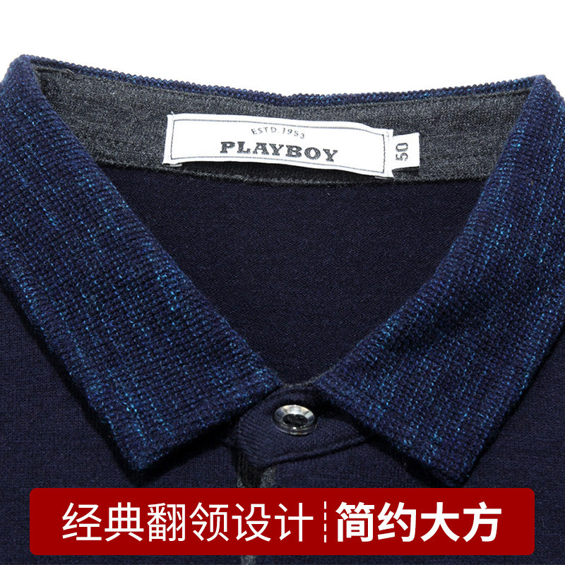 Playboy wool long-sleeved T-shirt solid color spring and autumn new middle-aged lapel loose lapel bottoming T-shirt