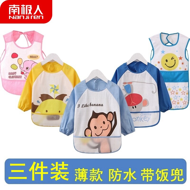 3pcs Antarctic man waterproof anti-dressing baby baby eating jacket Protective clothing Children's apron eating bib summer thin section