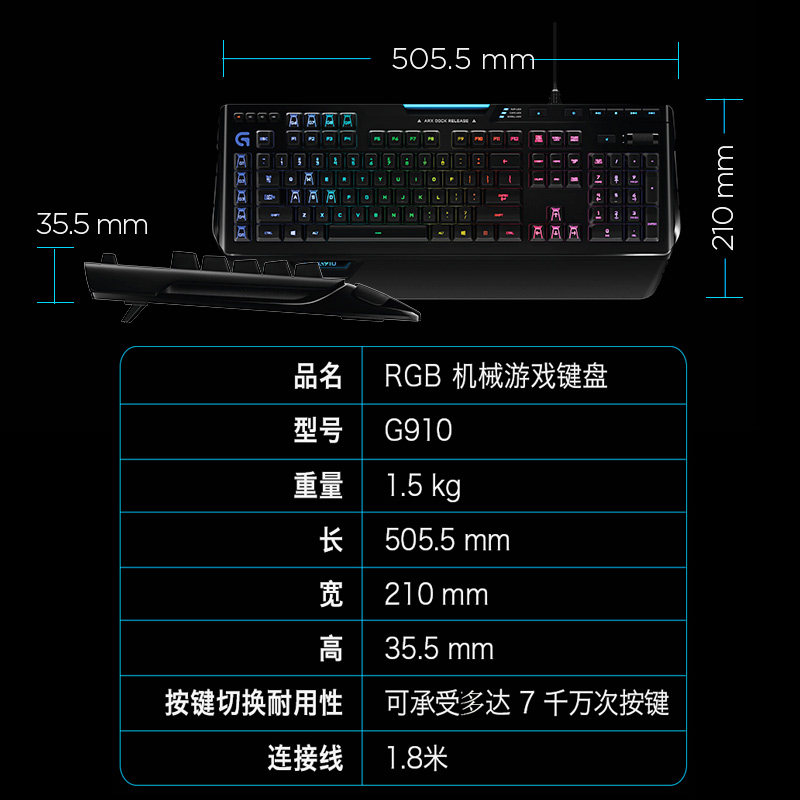 Order gift Logitech G910 wired game mechanical keyboard RGB backlight colorful game mouse keyboard headset three-piece notebook desktop LOL CF eat chicken e-sports keyboard mouse set
