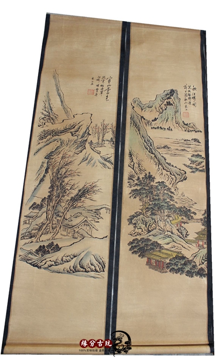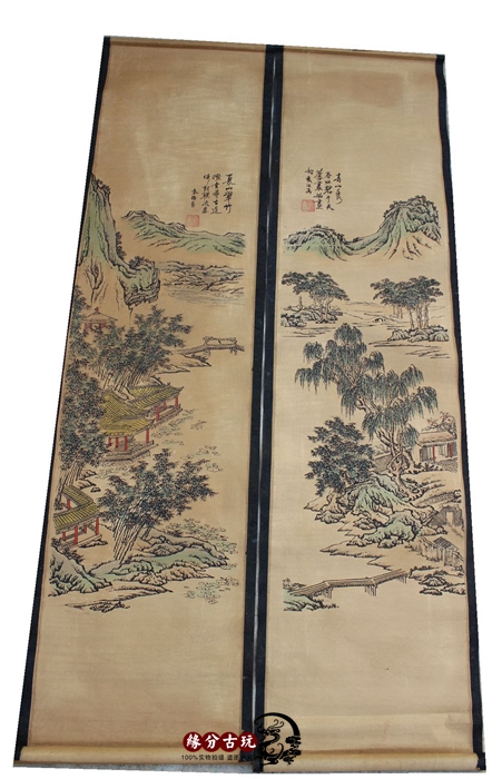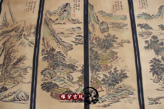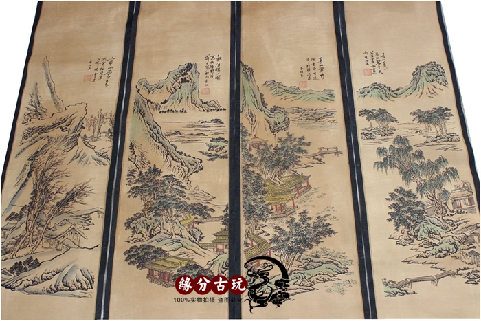 Imitation ancient character painting National painting Calligraphy Painting Wholesale Calligraphy Yuan Jiang Mountain Water Four-screen ancient painting Decorative Paintings have been framed