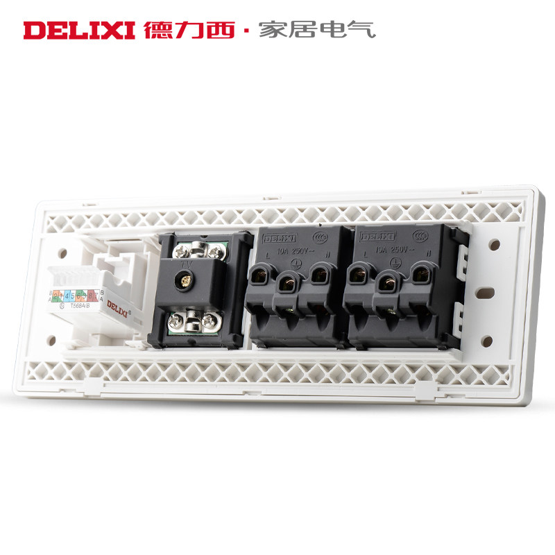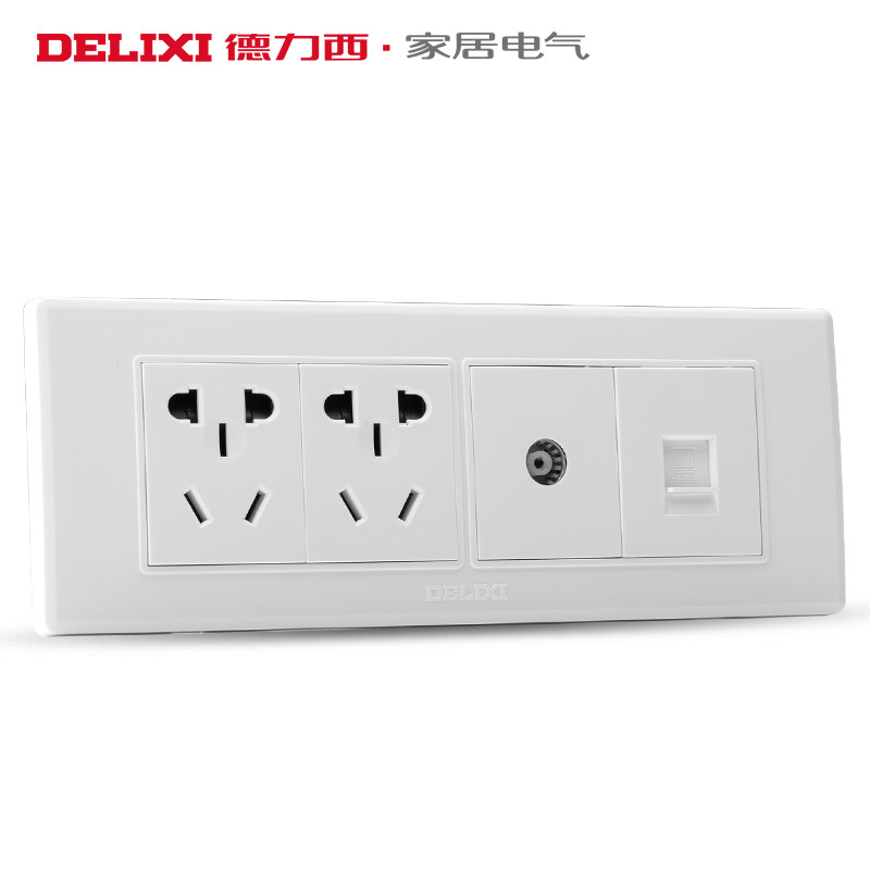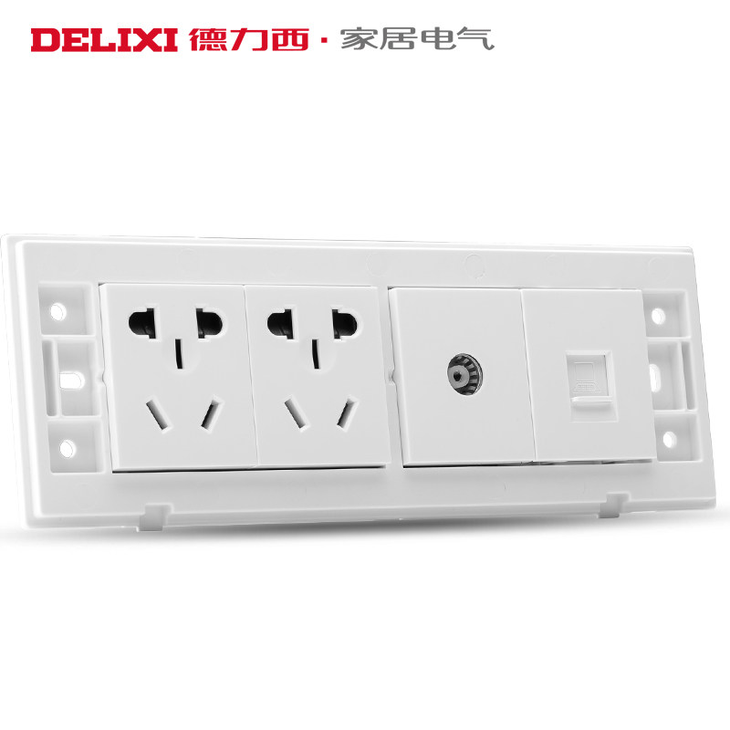 Delixi 118 type four-position cable TV computer six-hole two-plug closed-circuit network cable network power outlet panel