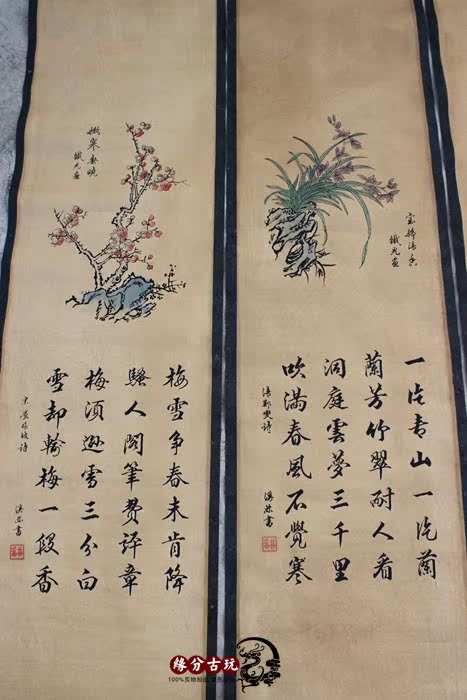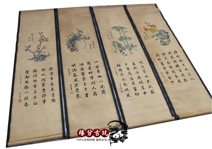 Antique chinese painting murals in Tang painting calligraphy Lixi Lin Meilan bamboo chrysanthemum four screen ancient painting decoration