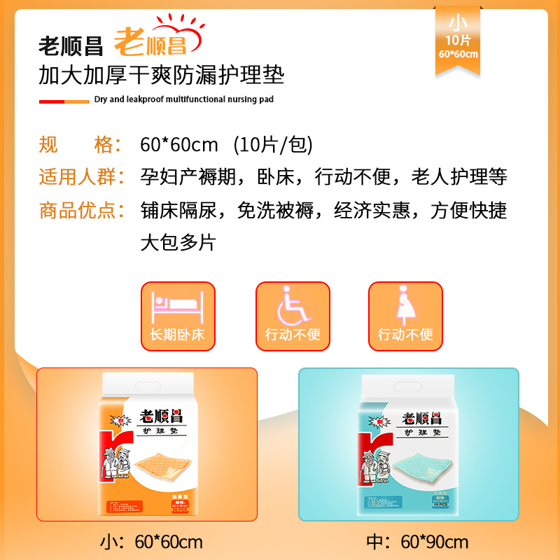 Lao Shunchang adult nursing pad 60X60 diaper for the elderly Disposable anti-urine pad diapers for the elderly