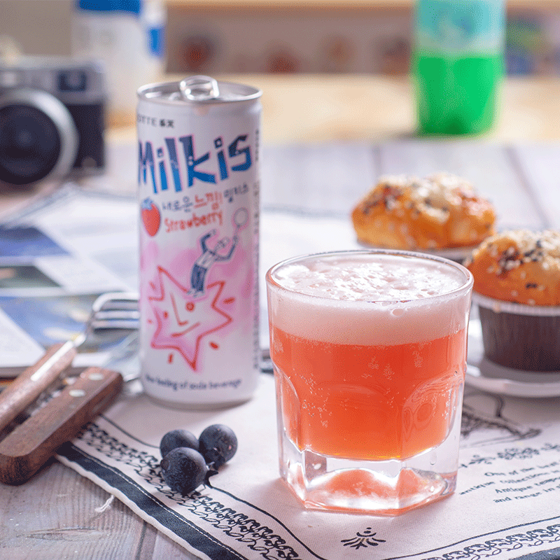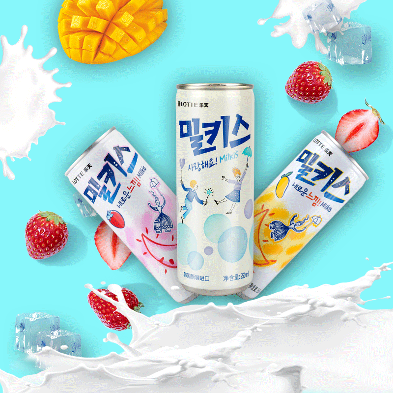 Korean imported drink Lotte Wonderful Kiss milk soda sparkling water net red carbonated drink 250ml*30 cans