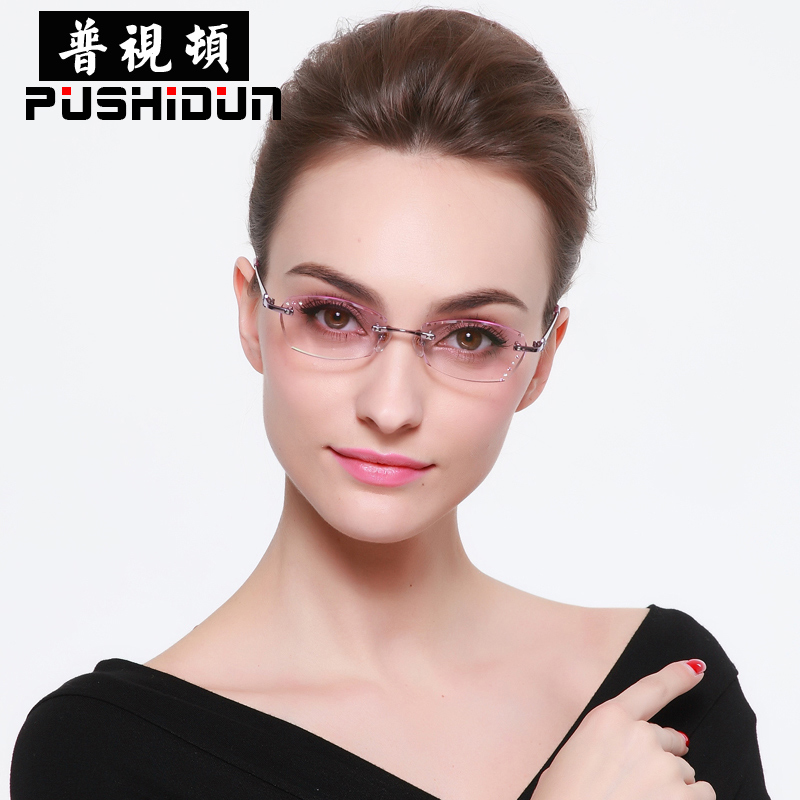Ultra-light pure titanium frameless diamond cut edge myopia glasses female elegant anti-blue light radiation eye hyperopia glasses have degrees