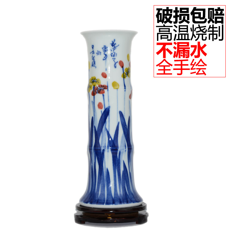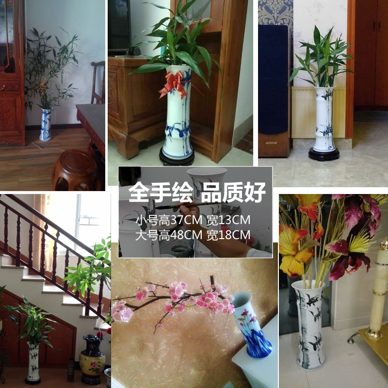 Jingdezhen ceramic rich and expensive bamboo vase pendulum pieces Living room thickened with high number of floor straight drum hydroponic flower arrangement decorations