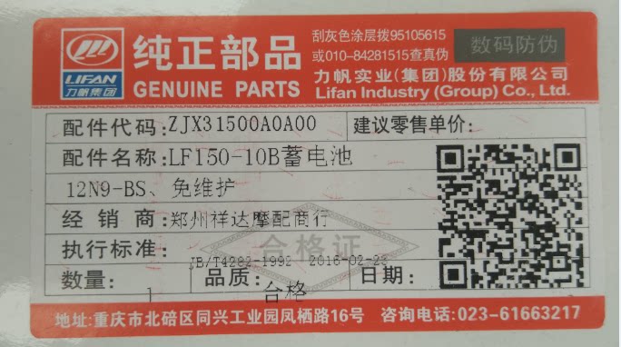 Lifan accessories LF150-10B 10F 10S KP KPR150 KPV KPT200 rechargeable battery