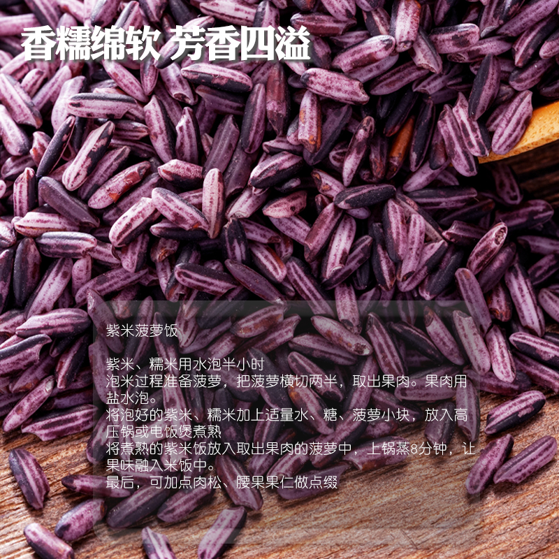 Yunnan purple rice 5 catties farm self-produced purple glutinous rice blood glutinous rice black glutinous rice pineapple rice raw materials whole grains coarse grains