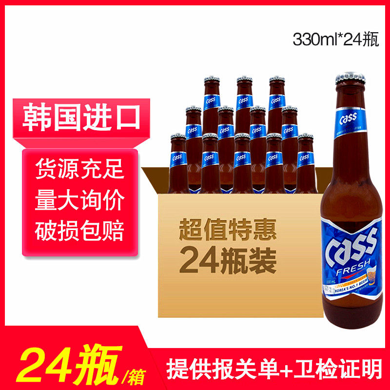 Korea imported cass Kaili beer 330ML*24 bottles of glass bottles