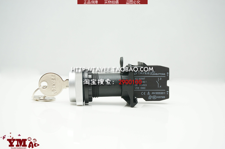 Shanghai Sky Comfort 22mm Two-Gear Key Switch LA42Y2PF-10 Two Position Key Knob Square Flat Head