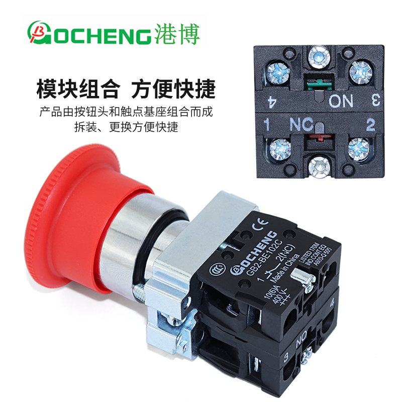 Port Boe B2-BS545 Emergency Stop Button Emergency Stop Self Lock Button Switch 11ZS Silver Dot BS542 Drilling 22