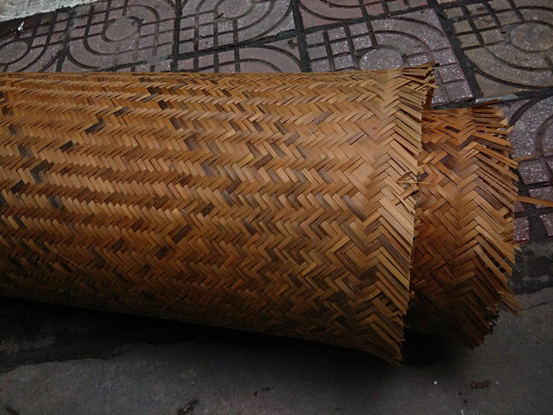 Carbonized decoration handmade bamboo mat Sichuan mat bamboo strip wall ceiling ceiling bamboo woven bamboo carving Brown yellow