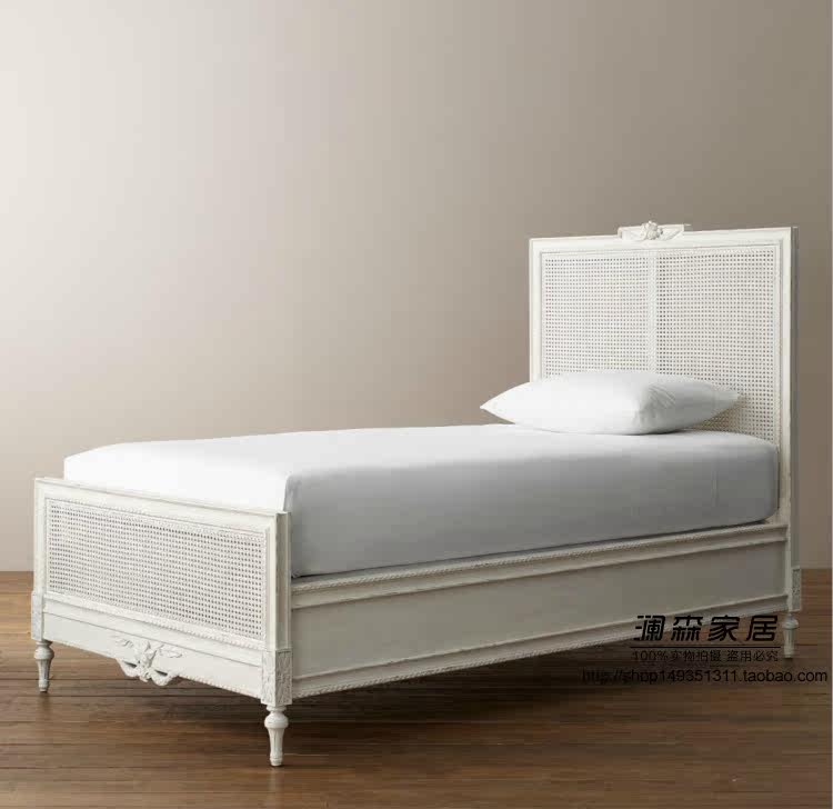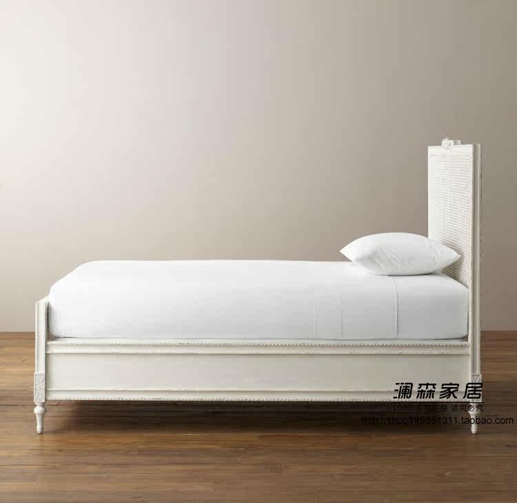 Fan-style solid wood Vine Bed American Solid Wood Furniture Retro Bag Rattan Bed Customizable-Taobao