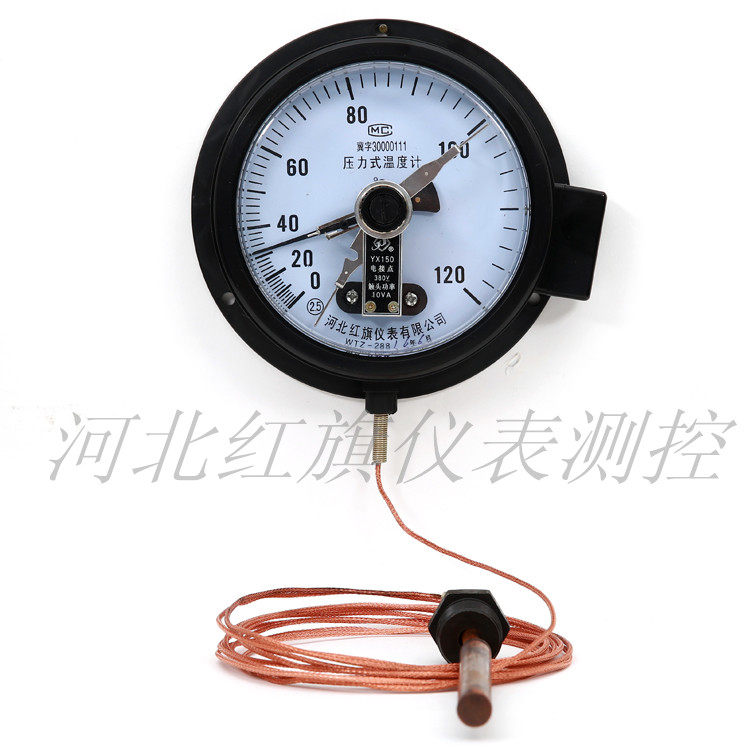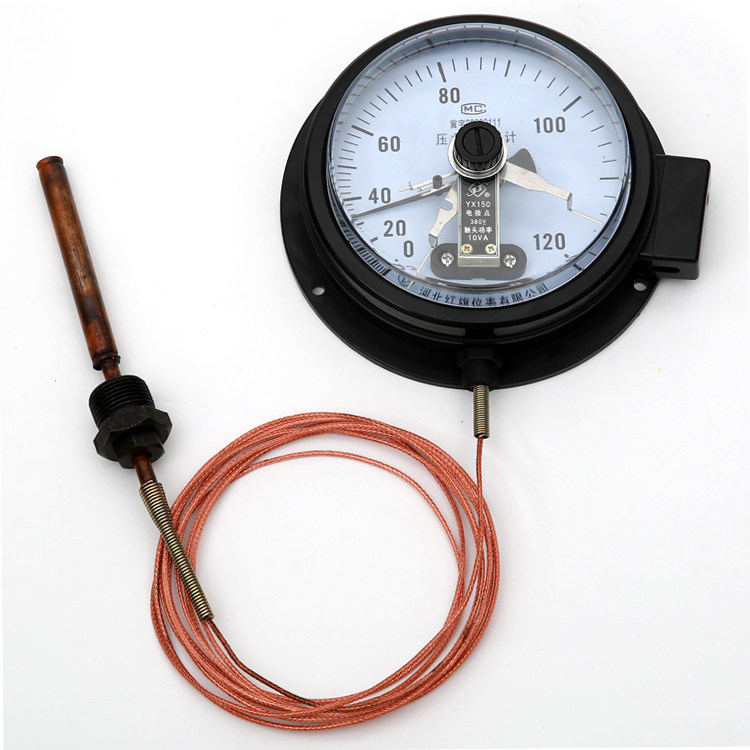 Pressure-type thermometer for electric contacts