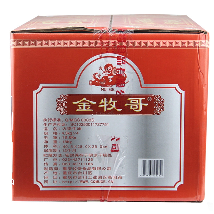 Chongqing hot pot partner Jin Muge hot pot oil 4 5kgx4 bags pastoral hot pot butter whole box