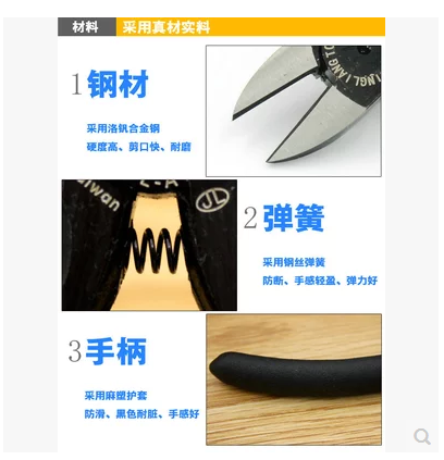 Taiwan original Jingliang brand JL-A15 A17 A04 steel wire pliers Steel wire oblique mouth pliers Shear pliers Oblique mouth pliers