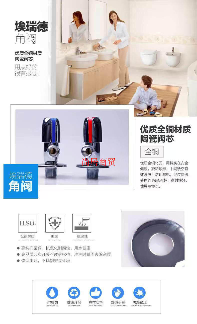 Triangle valve 4 points Ered standard cold and hot water all-copper triangle valve eight-character valve special for water heaters