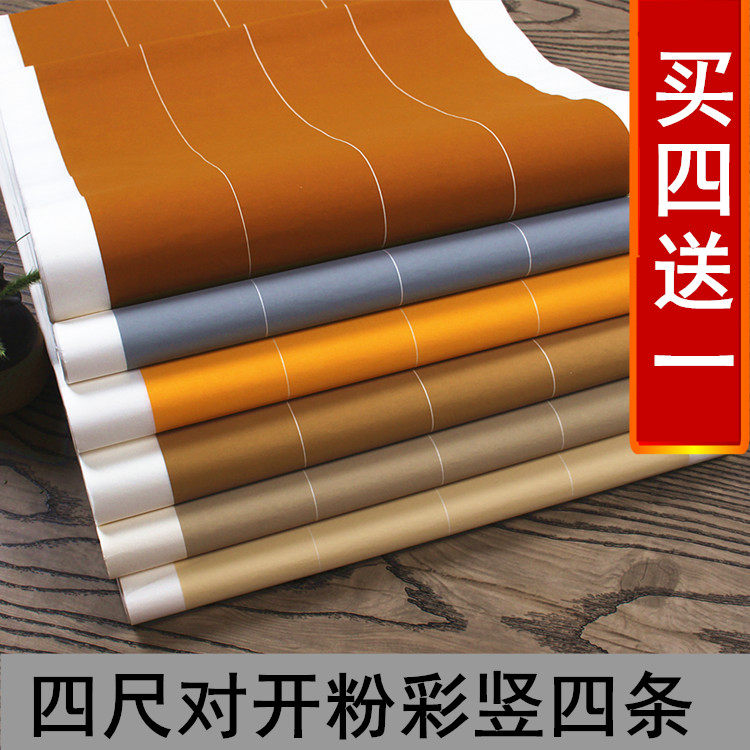 Four feet six feet open to powder color vertical stripe Gloge color national exhibition Calligraphy Works in imitation ancient and semi-raw cooked rice paper