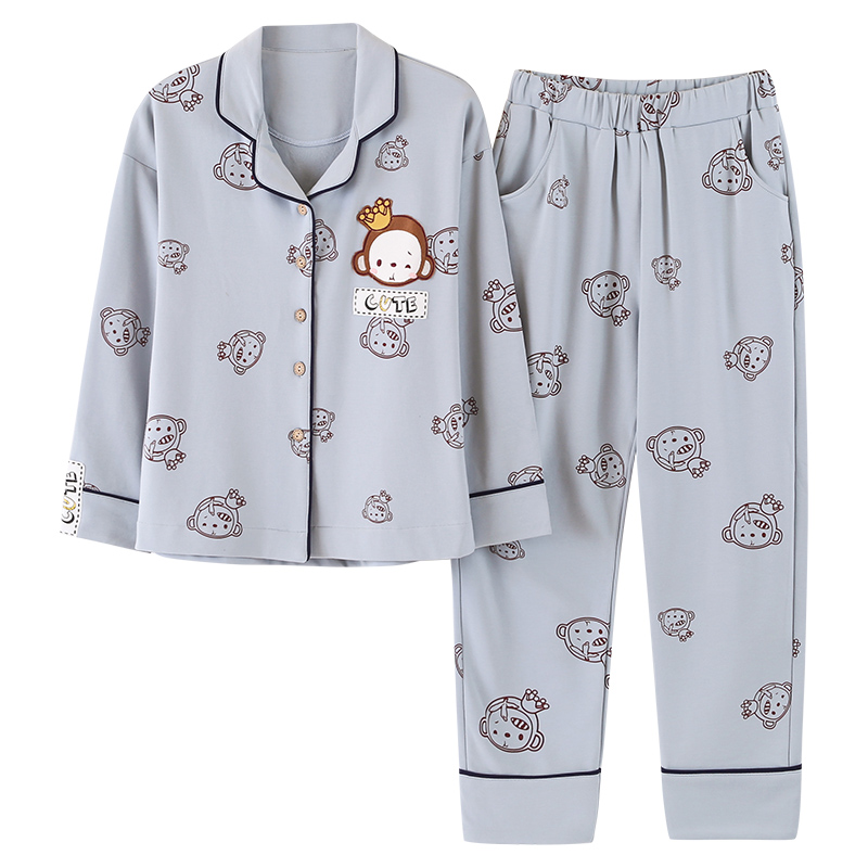 Antarctic Spring and Autumn Couple Pajamas Women Autumn Cotton Long Sleeve Winter Men Plus Size Home Clothes Set Korean Edition