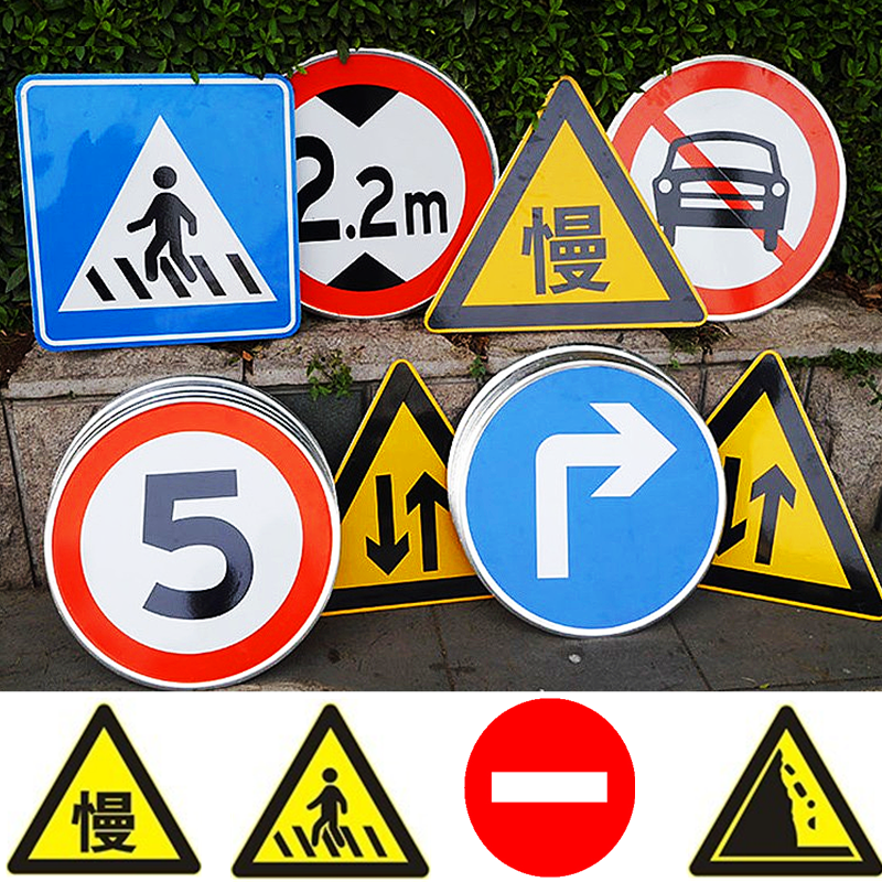Traffic signs road warning signs ahead of slow construction plate parking signs warning signs of high cards