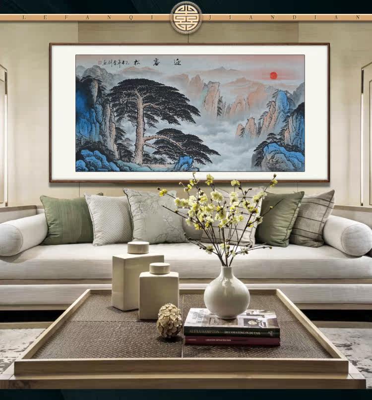 Landscape feng shui patron mountain zhao cai hanging calligraphy painting welcome song guohua office living room decoration pure hand-painted background wall
