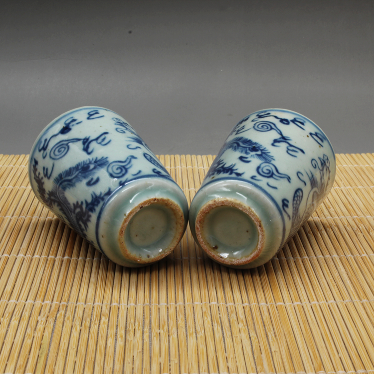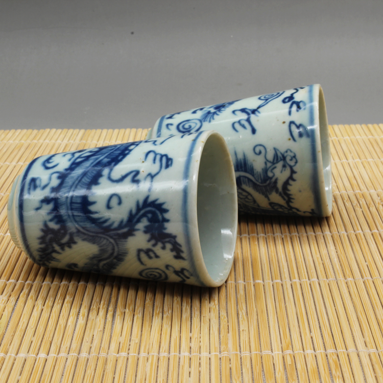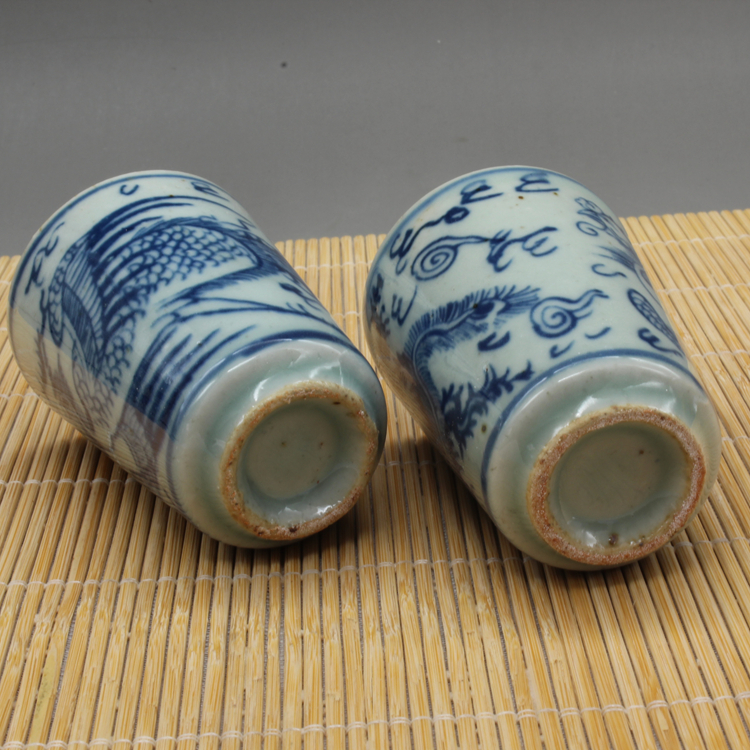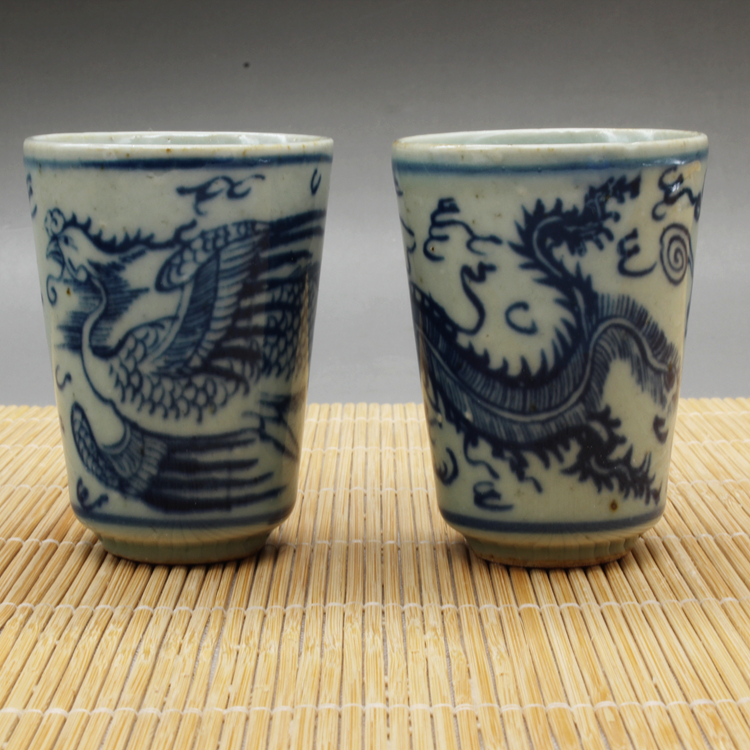 Qing Guangxu folk kiln blue and white phoenix pattern small wine cup tea cup (pair) antique antique porcelain antique