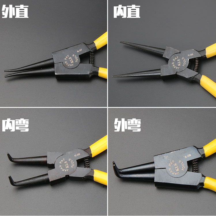 Yellow circlip pliers (5-inch outer straight) Yellow circlip pliers (7-inch outer straight) Yellow circlip pliers (7-inch inner straight) Yellow circlip pliers (7-inch outer bend) Yellow circlip pliers (7-inch inner bend) Yellow circlip pliers