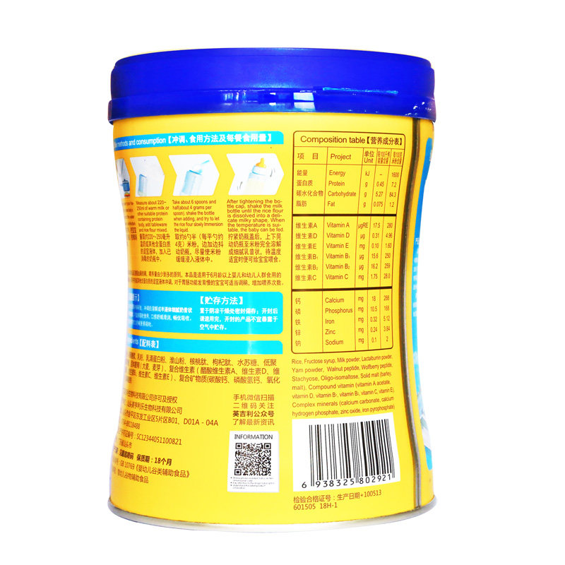 Fine rice flour calcium iron zinc 2 barrels fine rice flour fortified iron 2 barrels fine rice flour AD calcium millet fruits and vegetables 2 barrels calcium iron zinc 1 can fortified iron 1 can fortified iron 1 can ADcalcium millet 1 can ADcalcium millet 1 can
