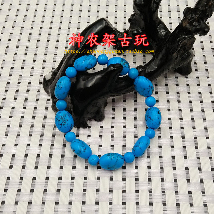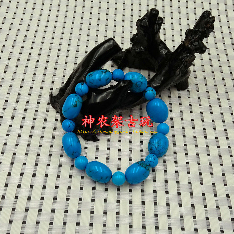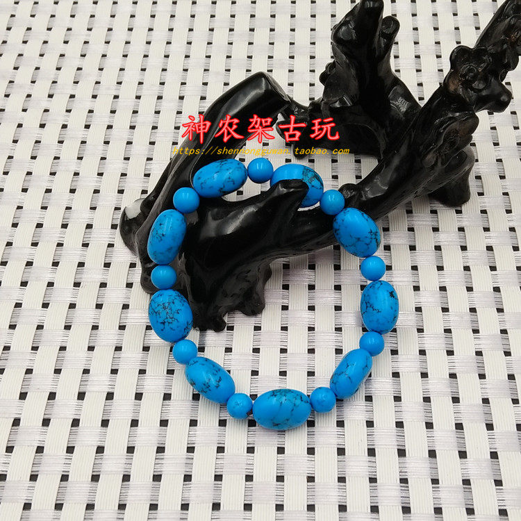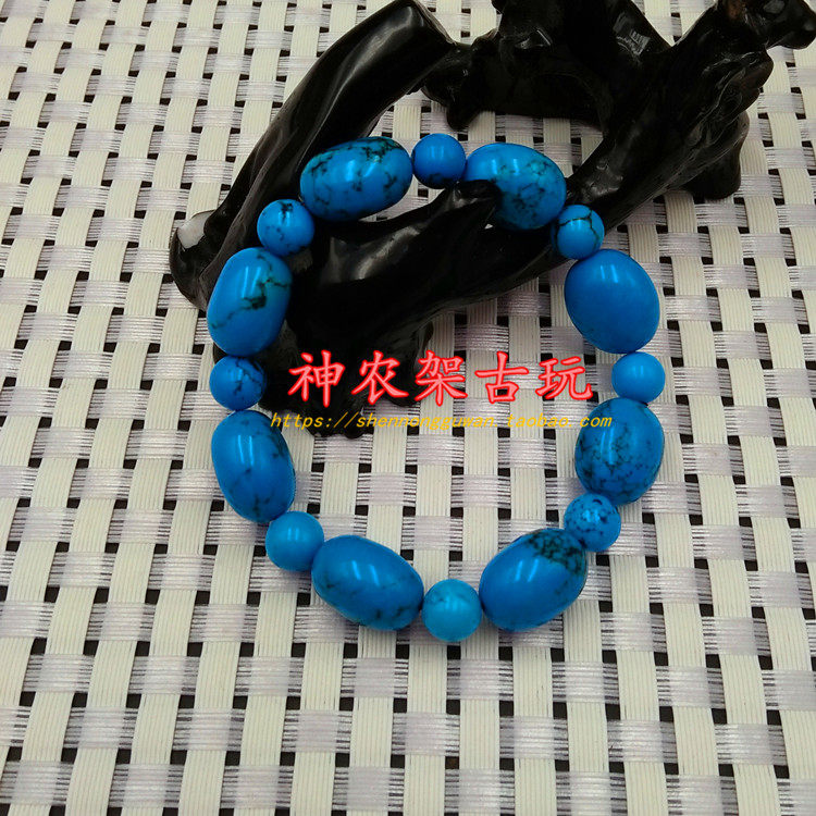 Hubei natural high porcelain blue pine stone handmade ethnic wind lovers' original mine green pine stone bean with hand strings of Buddha beads