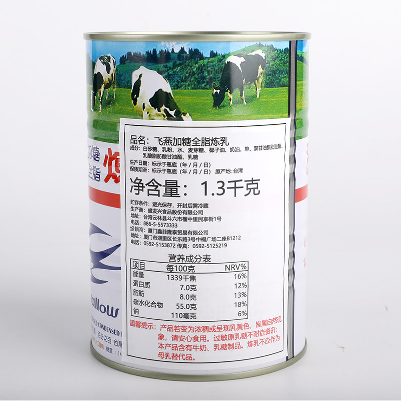(New date arrives) Taiwan Feiyan Sweetened Full Fat Condensed Milk Feiyan Condensed Milk Full Fat Condensed Milk 1 3KG
