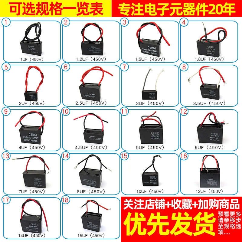 CBB61 start capacitor 1UF (450V) 1 CBB61 start capacitor 1 2UF (450V) 1 CBB61 start capacitor 1 5U