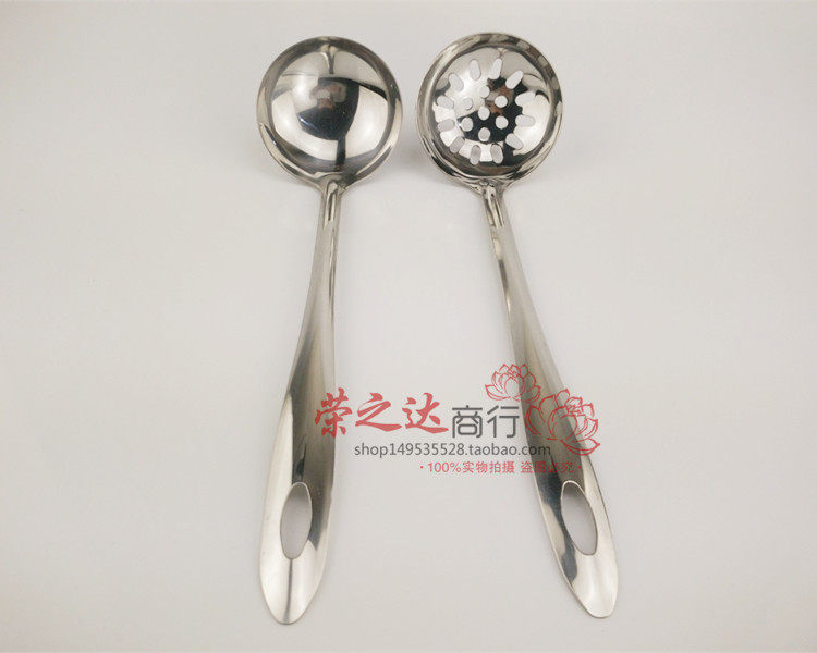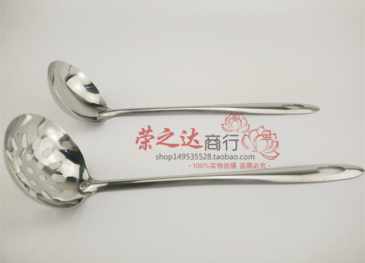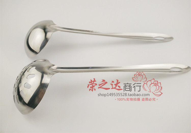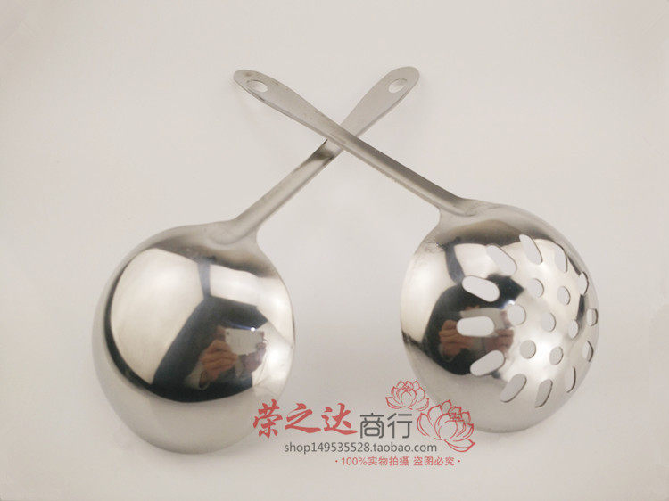 Thickened stainless steel soup spoon Hot pot spoon colander Household large soup shell soup leakage porridge spoon Long handle colander filter spoon