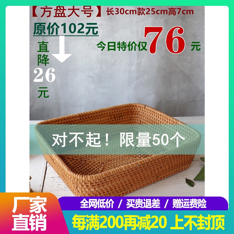 Vietnamese Rattan Storage Box Tea Ceremony Tea Set Storage Tray Snacks Dried Fruit Fruit Basket Coffee Table Desktop Organizer Basket