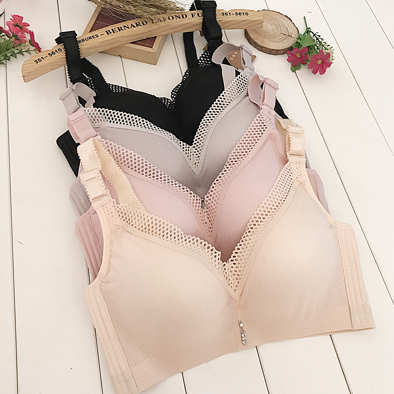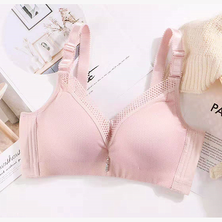 Non-magnetic and iron-free underwear, passing through the security gate, college entrance examination girl baby cotton gathered bra small chest medium thick cup adjustment type