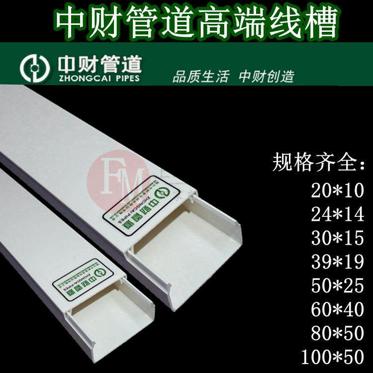 Zhongcai PVC trunking 20*10 surface mounted square flame retardant wiring white wall wiring wire protection sleeve thickness A