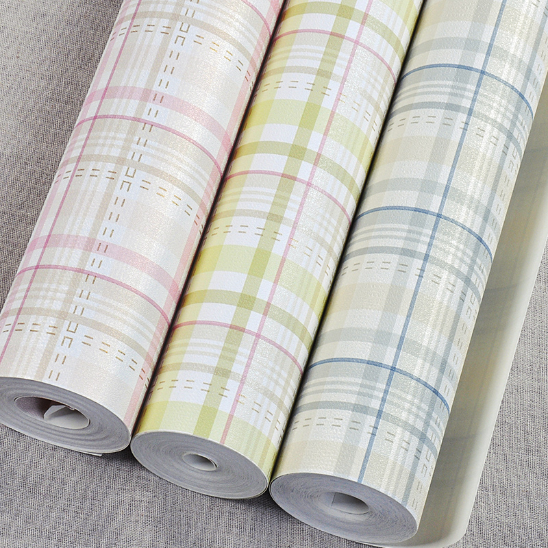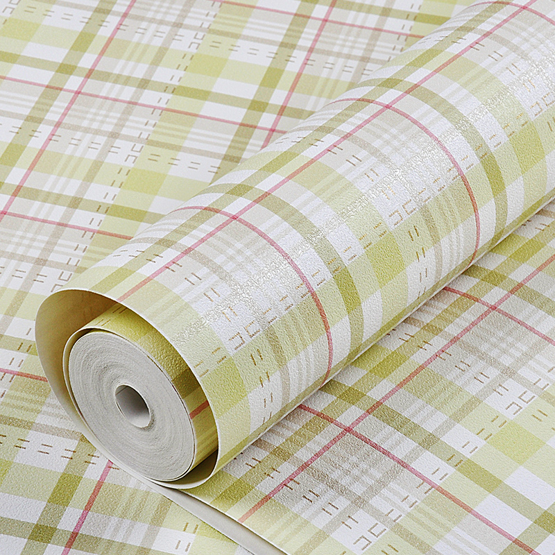 LOHAS wallpaper fresh green blue pink England plaid wallpaper bedroom living room study TV wall background wall