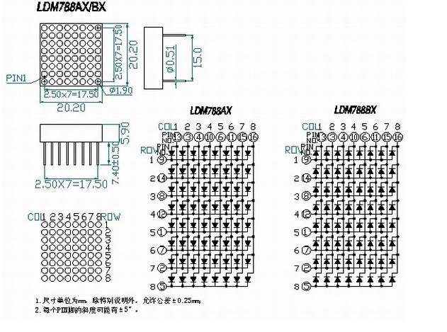1 9MM LED dot matrix module 8*8 bright red 788AS common cathode 788BS common anode 20*20MM