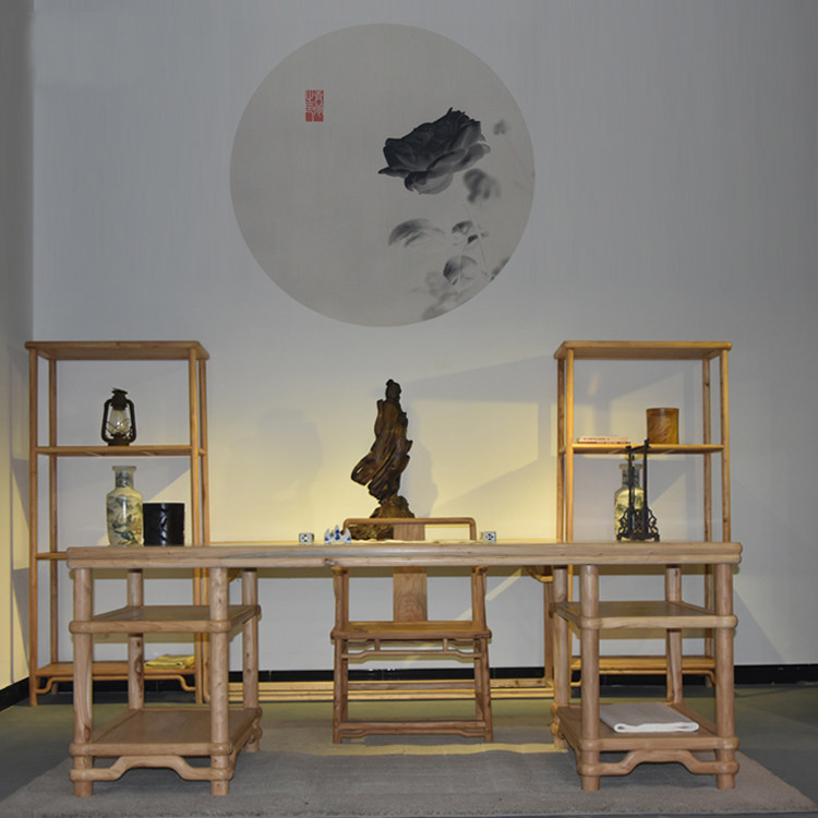 New Chinese Zen Furniture North Old Elm Wood Free Lacquered Desk Book Room Desk Log Environmental Mortised Solid Wood Table