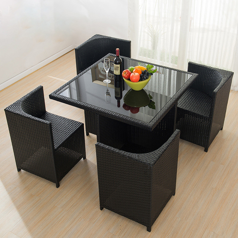 Outdoor rattan creative furniture rattan chair tea table five-piece balcony courtyard coffee bar outdoor leisure dining table and chair