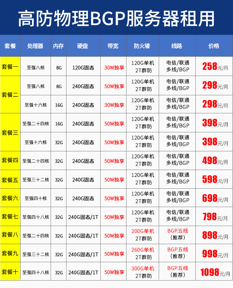 Independent high prevention server rent double line BGP game chess card 800G second solution Legendary webpage ignoring CC monthly payment
