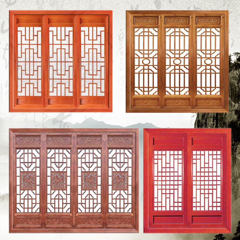 Chinese style Dongyang wood carving imitation ancient door and window solid wood flower lattice isolation door screen Xuanguan engraving hollowed-out manufacturer direct sales