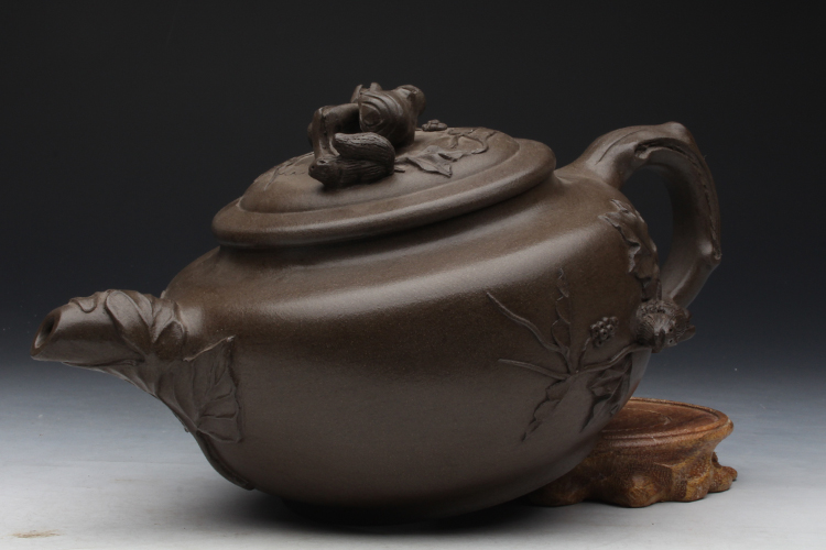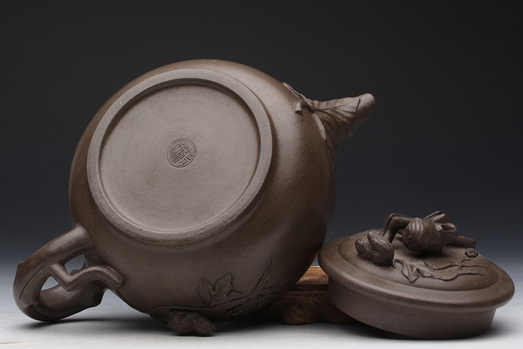 Taiwan Reflux Old Purple Sand Pot Famous master Jiang Rong's early full handmade bean green mud to make squirrel grape pot